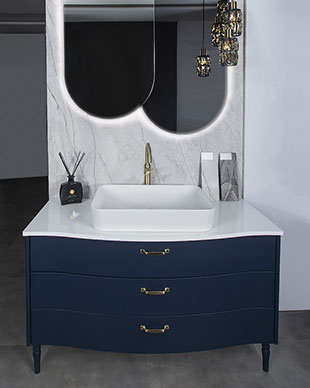 z kamienia i trzy pojemne szuflady z cichym domykiem łączą estetykę z wygodą codziennego użytkowania. Dobrze wygląda w łazienkach, w których liczy się wyrazisty,